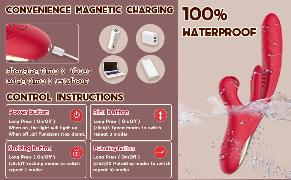 Function: 7 Sucking & 3 Thrusting & 3 Vibrating & 10 Pulsating & 40℃ Heating