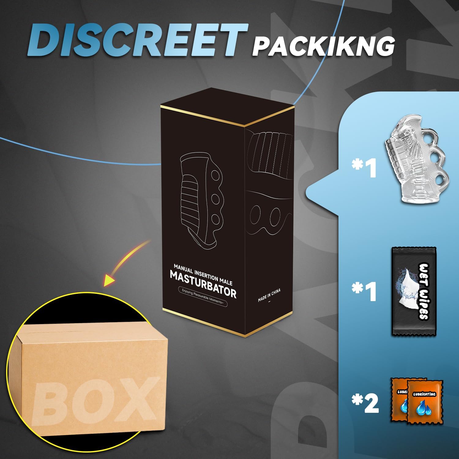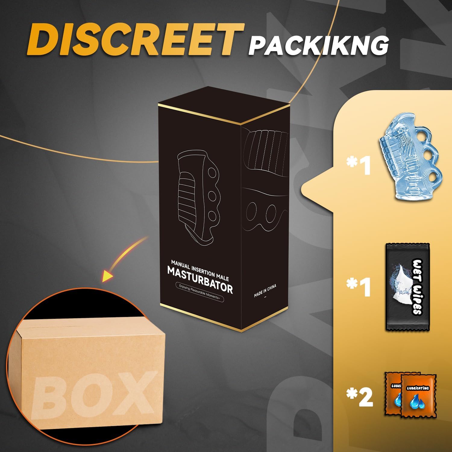 Packaging: Cardboard box + masturbator + charging cable + instruction manual